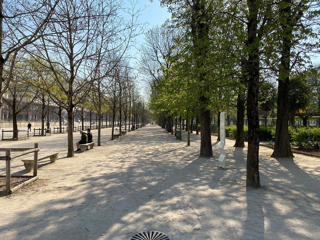 Al adentrarnos en el Jardín de las Tullerías, nos encontramos con una magnífica avenida central llamada «Allee Centrale», que se extiende desde la entrada del Louvre hasta el famoso Arco del Triunfo del Carrusel. Esta avenida está bordeada por árboles majestuosos y hermosas estatuas, brindando un ambiente sereno y agradable para dar un agradable paseo.